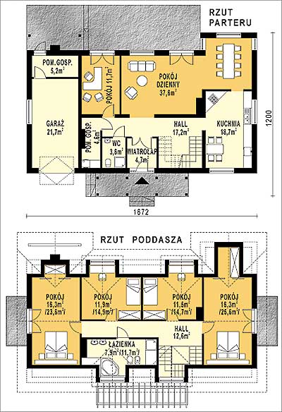 Budynek jednorodzinny, parterowy, z poddaszem mieszkalnym, niepodpiwniczonyŚciany zewnętrzne: gr. 36,5 cm z bloczków YTONG; strop: żelbetowy; schody: żelbetowe; dach: dwuspadowy o nachyleniu 40 stopni, więźba krokwiowo-płatwiowa, krycie dachówką ceramiczną
