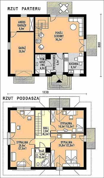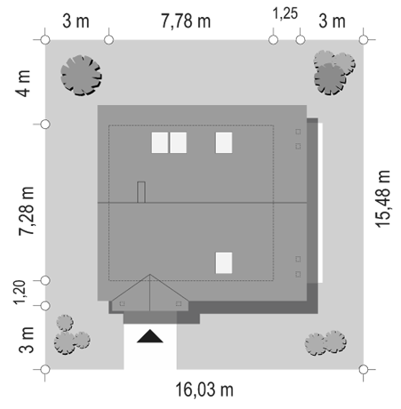 Budynek jednorodzinny, parterowy, z poddaszem mieszkalnym, niepodpiwniczonyŚciany zewnętrzne: gr. 36,5 cm z bloczków YTONG; strop: TERIVA; schody: drewniane; dach: dwuspadowy o nachyleniu 45 stopni, więźba krokwiowo-jetkowa, krycie dachówką
