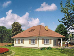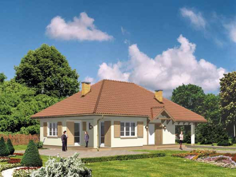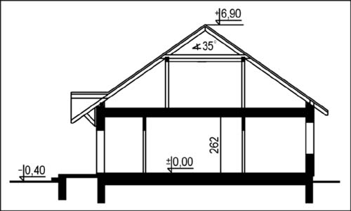 Budynek jednorodzinny, parterowy, z poddaszem nieużytkowym, niepodpiwniczonyŚciany zewnętrzne: gr. 36 cm z bloczków YTONG; strop: żelbetowy; dach: czterospadowy o nachyleniu 35 stopni, więźba krokwiowo-płatwiowo-stolcowa, krycie blachodachówką