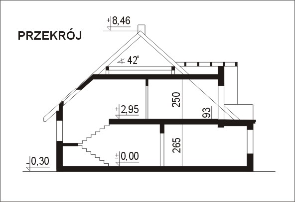 Budynek jednorodzinny, parterowy, z poddaszem mieszkalnym, niepodpiwniczonyŚciany zewnętrzne: gr. 36,5 cm z bloczków YTONG; strop: FERT; schody: żelbetowe; dach: czterospadowy o nachyleniu 42 stopni, więźba krokwiowo-płatwiowa, krycie dachówką ceramiczną