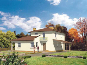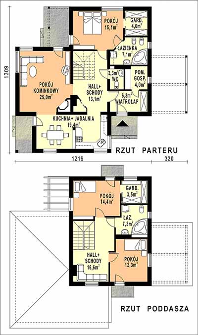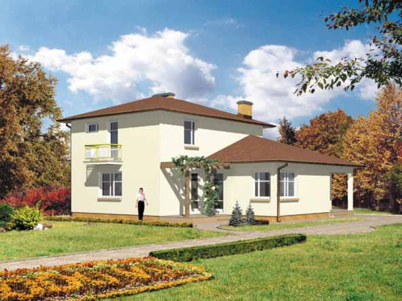 Budynek jednorodzinny, parterowy, w części piętrowy, niepodpiwniczonyŚciany zewnętrzne: gr. 36,5 cm z bloczków YTONG; strop: nad parterem żelbetowy, nad piętrem drewniany; schody: drewniane; dach: trzy i czterospadowy o nachyleniu 20 stopni, więźba drewniana, krycie dachówką bitumiczną