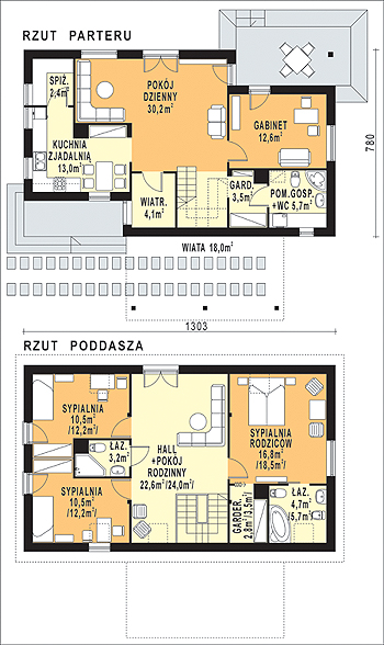 Budynek jednorodzinny, parterowy, z poddaszem mieszkalnym, niepodpiwniczonyŚciany zewnętrzne: gr. 36.5 cm z bloczków YTONG; strop: TERIVA; schody: drewniane; dach: dwuspadowy o nachyleniu 40 i 20 stopni, więźba drewniana, kryty dachówką