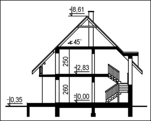 Budynek jednorodzinny, parterowy, z poddaszem mieszkalnym, niepodpiwniczonyŚciany zewnętrzne: gr. 36,5 cm z bloczków YTONG; strop: żelbetowy; schody: drewniane; dach: dwuspadowy o nachyleniu 45 stopni, krycie dachówką