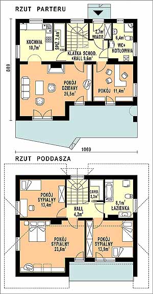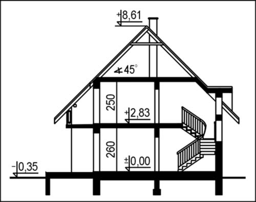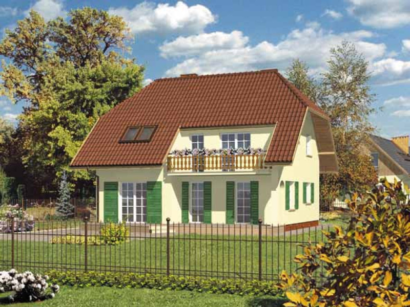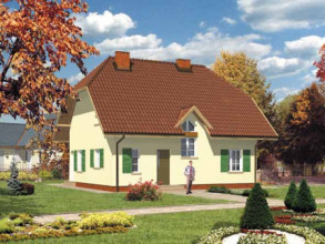 Budynek jednorodzinny, parterowy, z poddaszem mieszkalnym, niepodpiwniczonyŚciany zewnętrzne: gr. 36,5 cm z bloczków YTONG; strop: żelbetowy; schody: drewniane; dach: dwuspadowy o nachyleniu 45 stopni, więźba krokwiowo-jętkowa, krycie dachówką cementową lub ceramiczną