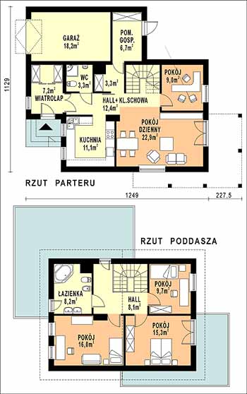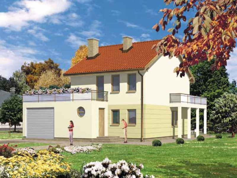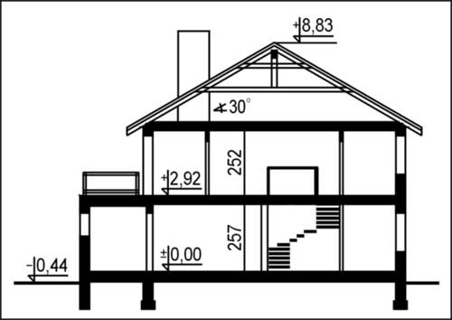 Budynek jednorodzinny, piętrowy, niepodpiwniczonyŚciany zewnętrzne: gr. 36,5 cm z bloczków YTONG; strop: żelbetowy; schody: drewniane; dach: dwuspadowy o nachyleniu 30 stopni, więźba drewniana, krycie blachą dachówkową