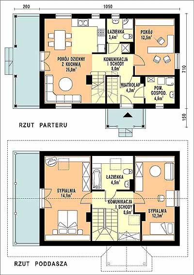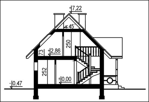 Budynek jednorodzinny, parterowy, z poddaszem mieszkalnym, niepodpiwniczonyŚciany zewnętrzne: gr. 36,5 cm z bloczków YTONG; strop: TERIVA; schody: drewniane; dach: dwuspadowy o nachyleniu 45 stopni, więźba krokwiowo-jętkowa, krycie dachówką cementową lub ceramiczną