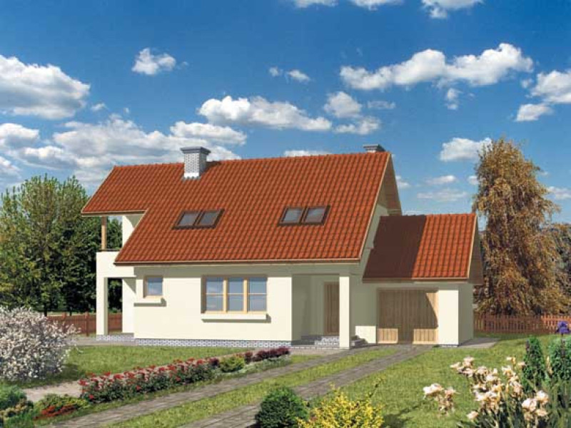 Budynek jednorodzinny, parterowy, z poddaszem mieszkalnym, niepodpiwniczonyŚciany zewnętrzne: gr. 36,5 cm z bloczków YTONG; strop: żelbetowy; schody: żelbetowe; dach: dwuspadowy o nachyleniu 38 stopni, więźba krokwiowo-kleszczowa, krycie dachówką