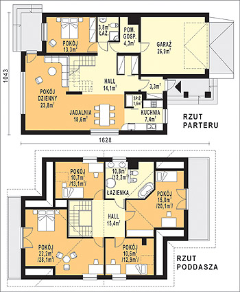 Budynek jednorodzinny, parterowy, z poddaszem mieszkalnym, niepodpiwniczonyŚciany zewnętrzne: gr. 36,5 cm z bloczków YTONG; strop: FERT; schody: żelbetowe; dach: dwuspadowy o nachyleniu 40 stopni, więźba drewniana, krycie dachówką