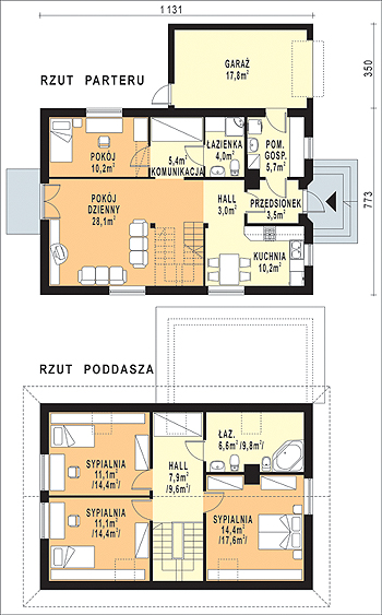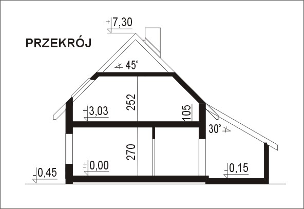 Budynek jednorodzinny, parterowy z poddaszem mieszkalnym, niepodpiwniczonyŚciany zewnętrzne: gr. 36,5 cm z bloczków YTONG; strop: FERT; schody: drewniane; dach: dwuspadowy o nachyleniu 45 i 30 stopni, więźba krokwiowo-jętkowa, krycie dachówką