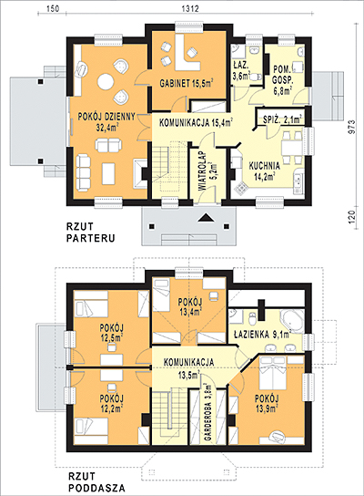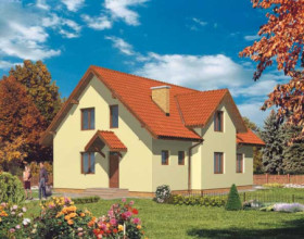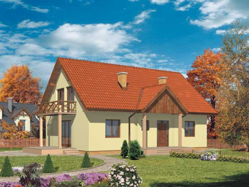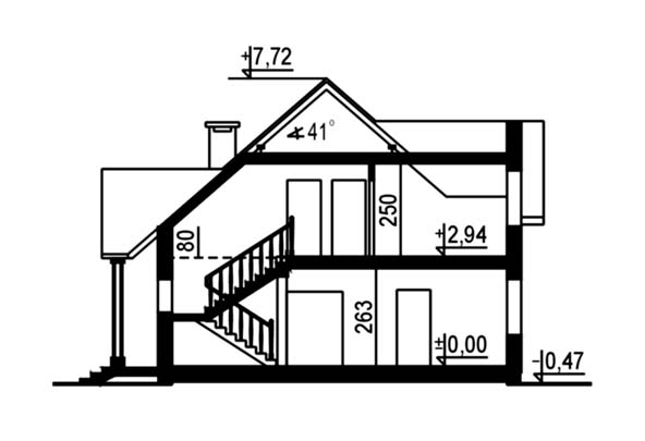 Budynek jednorodzinny, parterowy z poddaszem mieszkalnym, niepodpiwniczonyŚciany zewnętrzne: gr. 38 cm z pustaków ceramicznych POROTHERM; strop: TERIVA; schody: żelbetowe; dach: dwuspadowy o nachyleniu 41 stopni, więźba krokwiowo-płatwiowa, krycie dachówką