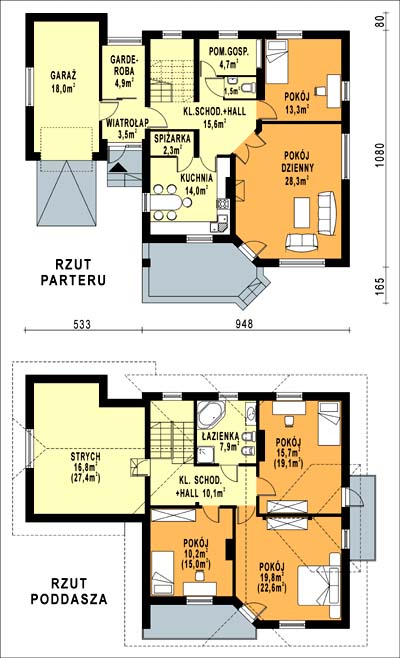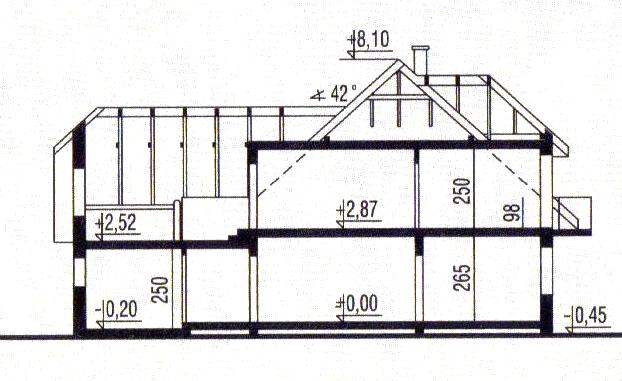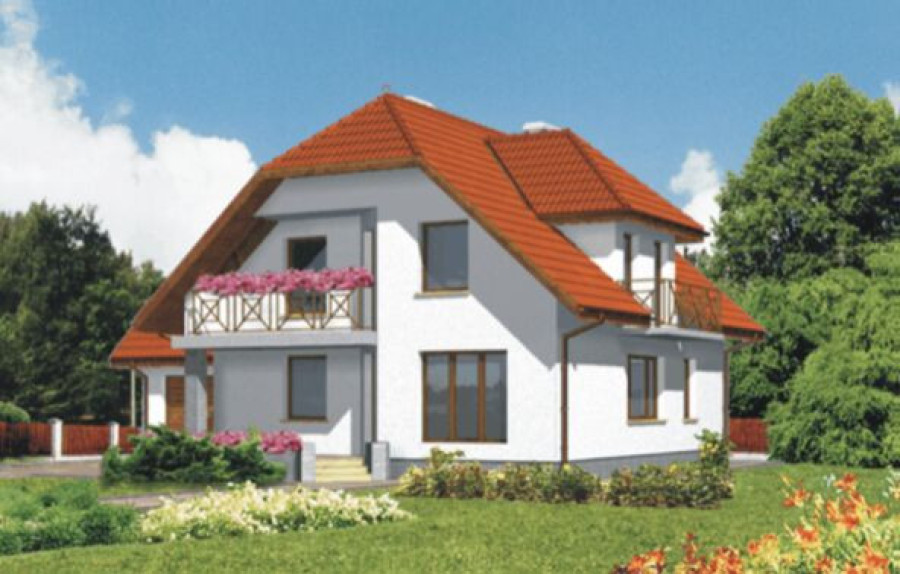 Budynek jednorodzinny, parterowy, z poddaszem mieszkalnym, niepodpiwniczonyŚciany zewnętrzne: grubość 36,5 cm z bloczków YTONG; strop: żelbetowy; schody: żelbetowe; dach: dwuspadowy o nachyleniu 42 stopni, więźba drewniana, krycie dachówką BRAAS