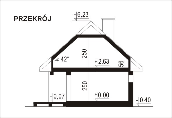 Budynek jednorodzinny, mieszkalno-letniskowy, parterowy, z poddaszem mieszkalnym, niepodpiwniczonyŚciany zewnętrzne: grubość 36,5 cm: z bloczków YTONG; strop: żelbetowy; schody: drewniane; dach: dwuspadowy o nachyleniu 42 stopni, więźba drewniana krokwiowo-jętkowa, krycie dachówką cementową