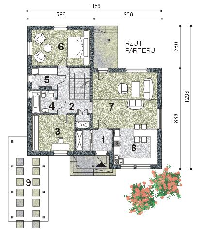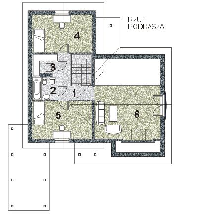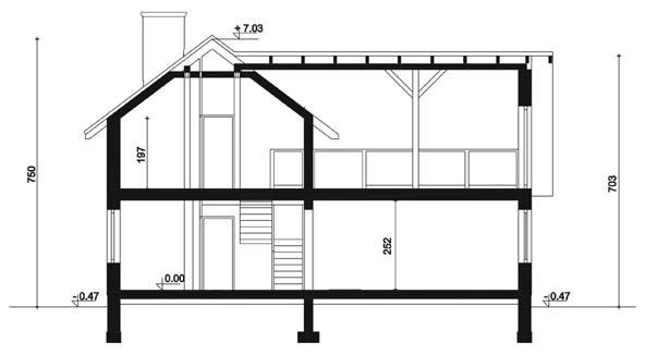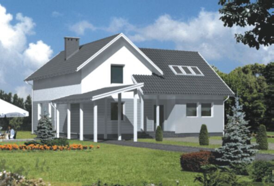 Budynek jednorodzinny, parterowy, z poddaszem mieszklanym, niepodpiwniczonyŚciany zewnętrzne: grubość 36,5cm; bloczki YTONG; strop: TERIVA 1; schody: płytowe, żelbetowe, dwubiegowe; dach: dwuspadowy o nachyleniu 37 stopni, wiata garażowa 15 stopni, więźba drewniana, krycie dachówką cementową BRASS