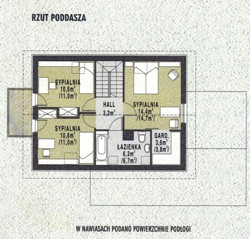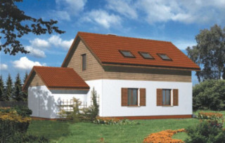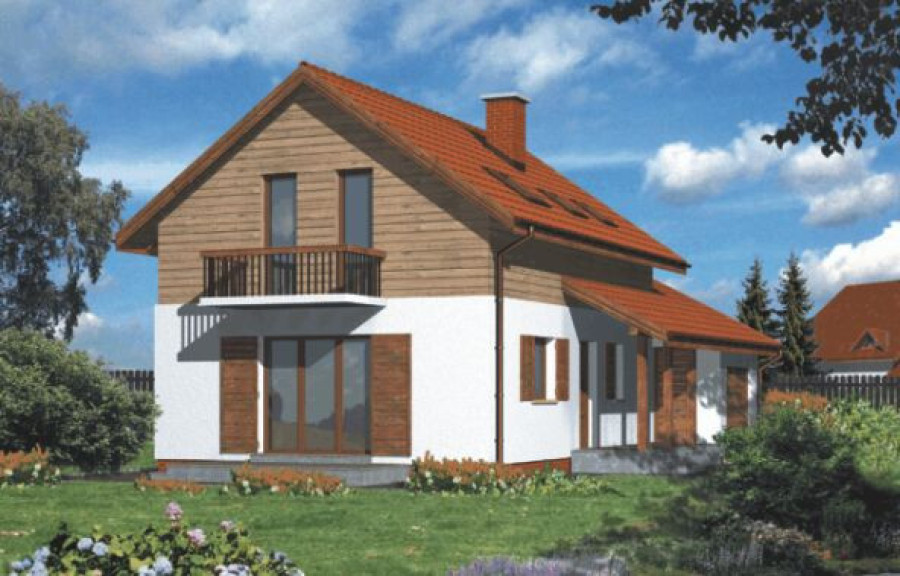 Budynek jednorodzinny, parterowy, z poddaszem mieszkalnym, niepodpiwniczonyŚciany zewnętrzne: gr. 36,5 cm z bolczków YTONG (parter),gr. 30 cm z okładziną drewnianą (poddasze),gr. 24 cm z bloczków YTONG (garaż); strop: TERIVA; schody: drewniane; dach: dwuspadowy o nachyleniu 36 i 27 stopni, więźba krokwiowo-jętkowa, krycie dachówką bitumiczną