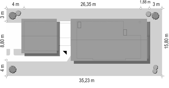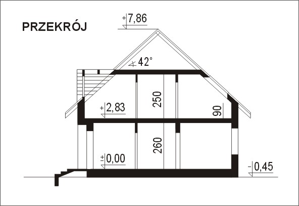 Budynek jednorodzinny, parterowy, z poddaszem mieszkalnym, niepodpiwniczonyŚciany zewnętrzne: gr. 36,5 cm z bloczków YTONG; strop: żelbetowy; schody: drewniane; dach: dwuspadowy o nachyleniu 42 stopni, więźba drewniana, krycie dachówką