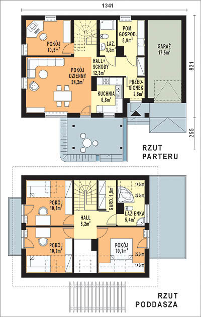 Budynek jednorodzinny, parterowy z poddaszem mieszkalnym, niepodpiwniczonyŚciany zewnętrzne: gr. 38 cm z pustaków ceramicznych POROTHERM; strop: żelbetowy; schody: drewniane; dach: dwuspadowy o nachyleniu 42 stopni, więźba krokwiowo-jętkowa, krycie dachówką