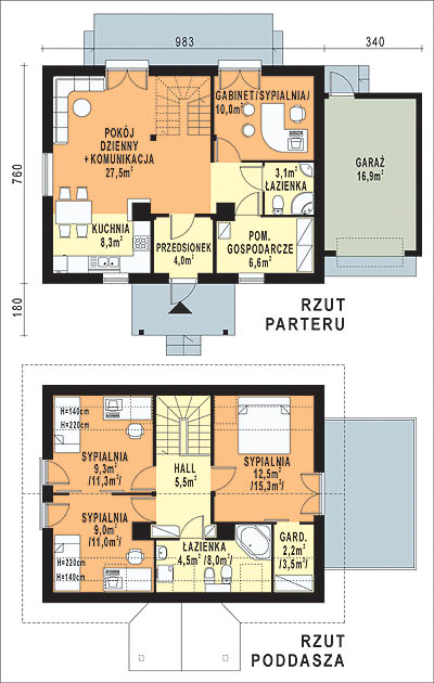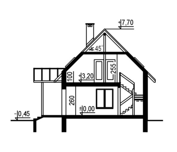 Budynek jednorodzinny parterowy z poddaszem mieszkalnym, niepodpiwniczonyŚciany zewnętrzne: gr. 36,5 cm z bloczków YTONG; strop: FERT; schody: drewniane; dach: dwuspadowy, o nachyleniu 45 stopni, więźba krokwiowo-jętkowa z płatwią kalenicową, krycie dachówką