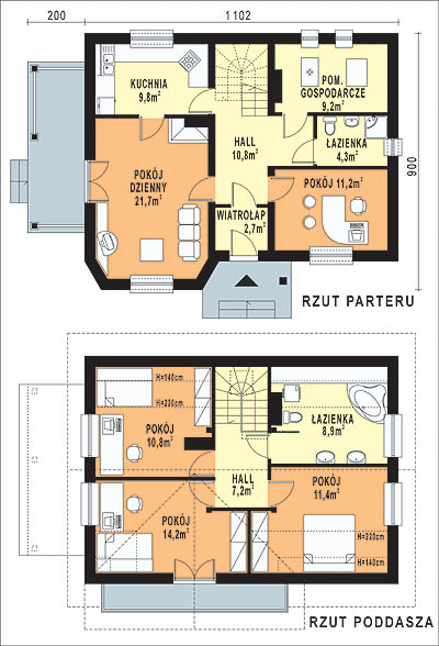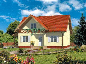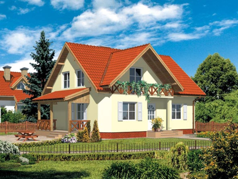 Budynek jednorodzinny parterowy z poddaszem mieszkalnym, niepodpiwniczonyŚciany zewnętrzne: gr. 38 cm; porotherm 38T Dryfix; strop: TERIVA oraz fragmentarycznie żelbetowy; schody: drewniane; dach: dwuspadowy, o nachyleniu 41 stopni, krycie dachówką