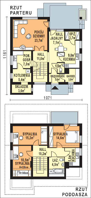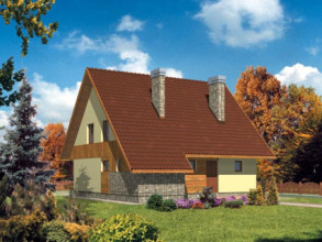 Budynek jednorodzinny dwupokoleniowy, parterowy z poddaszem mieszkalnym, niepodpiwniczonyŚciany zewnętrzne: gr. 38 cm z pustaków ceramicznych + styropian; strop: DZ-3; schody: żelbetowe; dach: dwuspadowy o nachyleniu 45 stopni, więźba krokwiowo-płatwiowa, krycie dachówką