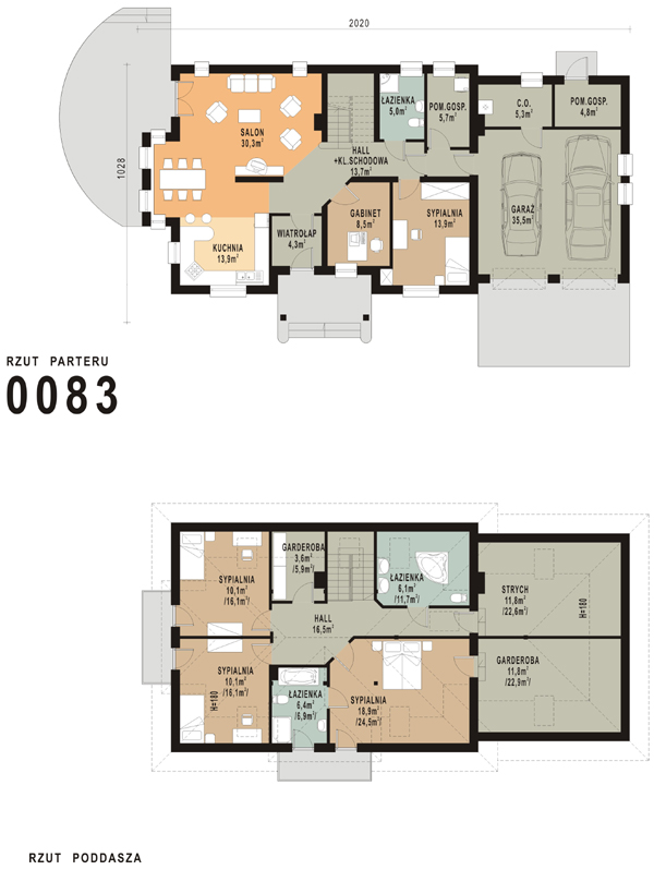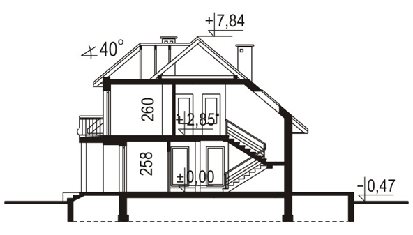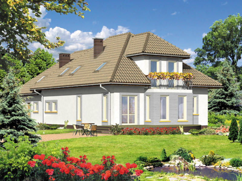 Budynek jednorodzinny parterowy z poddaszem mieszkalnym, niepodpiwniczonyŚciany zewnętrzne: gr. 36,5 cm z bloczków YTONG; strop: żelbetowy; schody: żelbetowe; dach: czterospadowy o nachyleniu 40 stopni, kryty dachówką