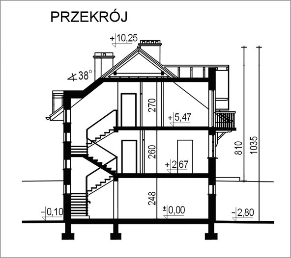 Budynek jednorodzinny parterowy z poddaszem mieszkalnym, częściowo podpiwniczony, usytuowany w skarpieŚciany zewnętrzne: gr. 39 cm z pustaków ceramicznych + styropian; strop: żelbetowy; schody: żelbetowe; dach: dwuspadowy, o nachyleniu 38 stopni, więźba płatwiowo-jętkowa, krycie dachówką