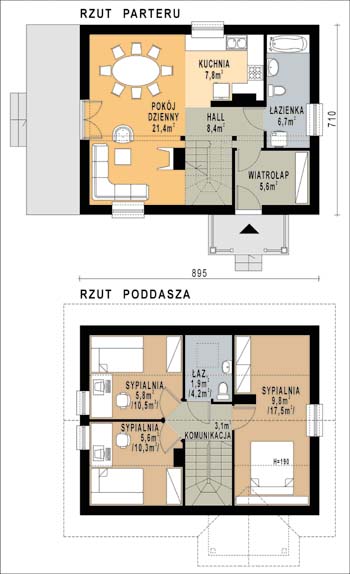 Budynek jednorodzinny parterowy z poddaszem mieszkalnym, niepodpiwniczonyŚciany zewnętrzne: gr. 36,5 cm z bloczków YTONG; strop: drewniany; schody: drewniane; dach: dwuspadowy o nachyleniu 41 stopni, więźba krokwiowo-jetkowa, krycie blachodachówką