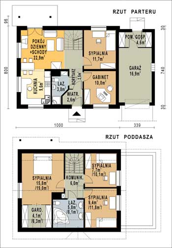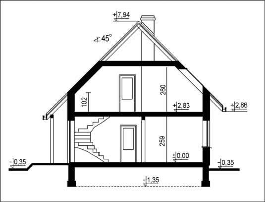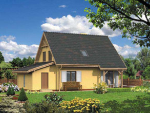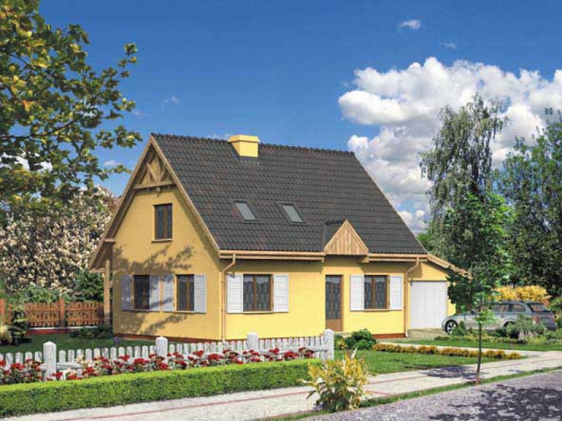 Budynek jednorodzinny, parterowy z poddaszem mieszkalnym, niepodpiwniczonyŚciany zewnętrzne: gr. 39 cm z pustaków ceramicznych + styropian; strop: nad parterem żelbetowy, nad poddaszem drewniany; schody: żelbetowe; dach: dwuspadowy o nachyleniu 45 stopni, więźba krokwiowo-jętkowa, krycie dachówką
