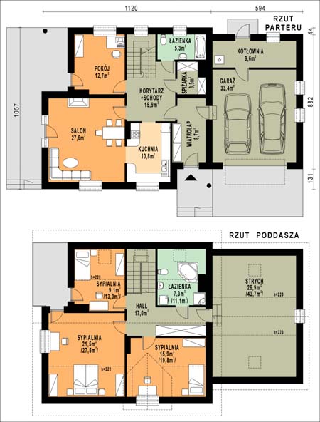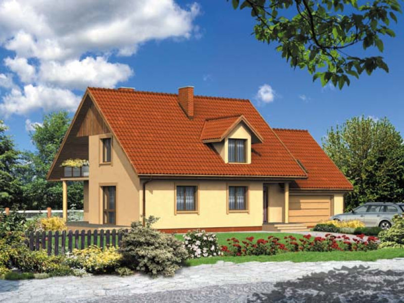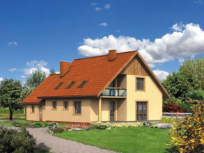 Budynek jednorodzinny parterowy z poddaszem mieszkalnym, niepodpiwniczonyŚciany zewnętrzne: gr. 44 cm z pustaków ceramicznych POROTHERM; strop: POROTHERM; schody: żelbetowe; dach: dwuspadowy o nachyleniu 41 stopni, więźba krokwiowo-płatwiowo-jętkowa