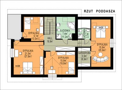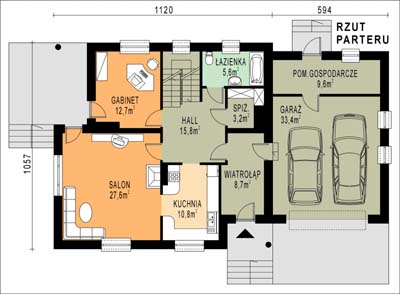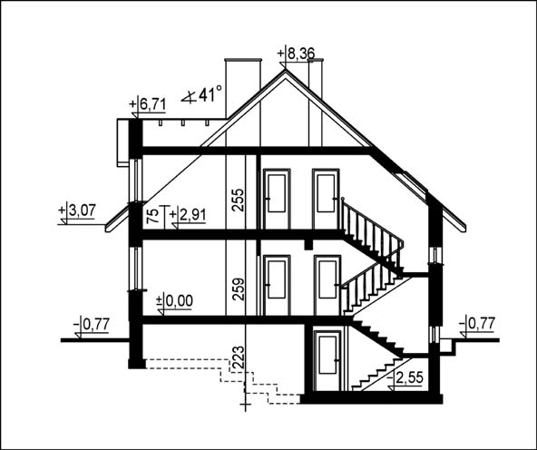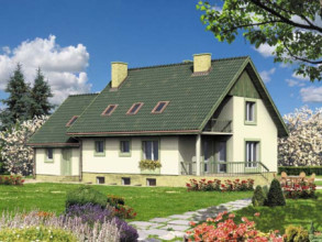 Budynek jednorodzinny parterowy z poddaszem mieszkalnym, częściowo podpiwniczonyŚciany zewnętrzne: gr. 44 cm z pustaków ceramicznych POROTHERM; strop: POROTHERM; schody: żelbetowe; dach: dwuspadowy o nachyleniu 41 stopni, więźba krokwiowo-płatwiowo-jętkowa