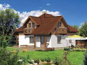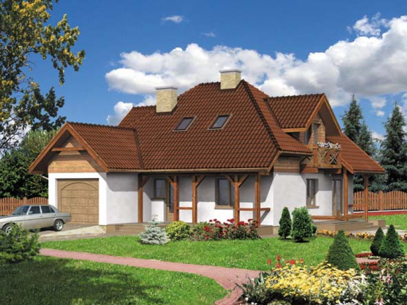 Budynek jednorodzinny parterowy z poddaszem mieszkalnym, niepodpiwniczonyŚciany zewnętrzne: gr. 44 cm z pustaków ceramicznych POROTHERM; strop: POROTHERM; schody: żelbetowe; dach: dwuspadowy o nachyleniu 40 stopni, więźba krokwiowo-płatwiowo-jętkowa, krycie dachówką