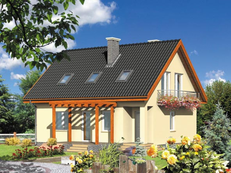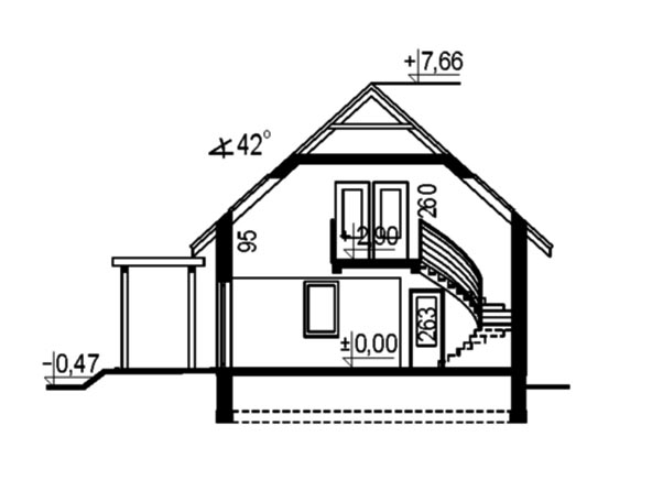 Budynek jednorodzinny parterowy z poddaszem mieszkalnym, niepodpiwniczonyŚciany zewnętrzne: gr. 38 cm z pustaków ceramicznych POROTHERM; strop: POROTHERM; schody: drewniane; dach: dwuspadowy, o nachyleniu 42 stopni
