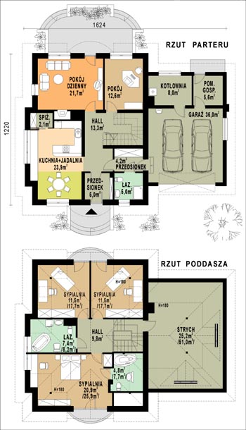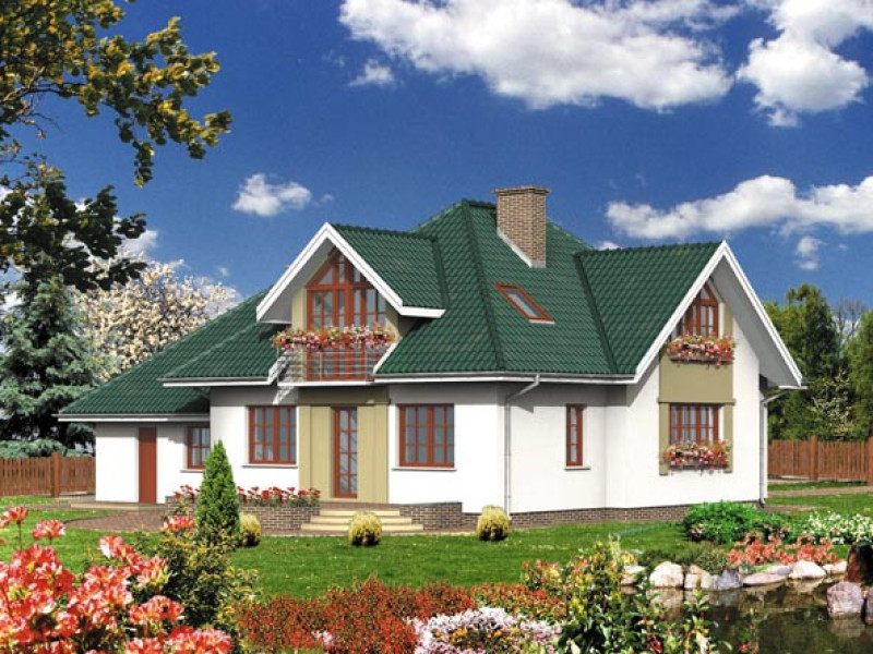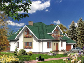 Budynek jednorodzinny parterowy z poddaszem mieszkalnym, niepodpiwniczonyŚciany zewnętrzne: gr. 44 cm z pustaków ceramicznych POROTHERM; strop: żelbetowy; schody: żelbetowe; dach: czterospadowy o nachyleniu 40 stopni