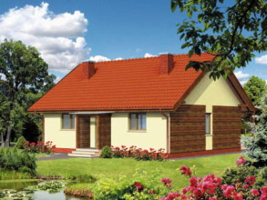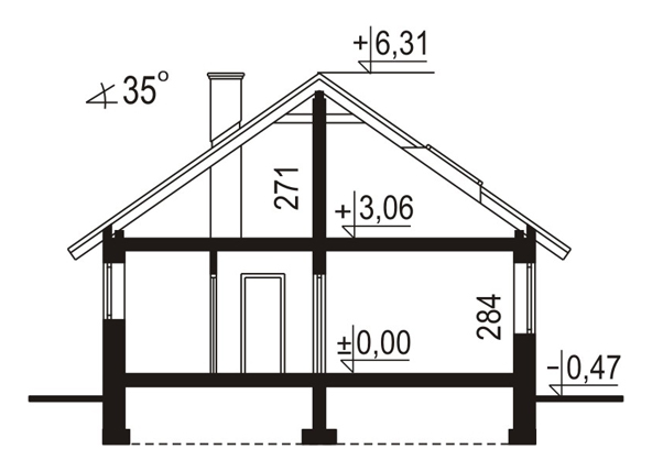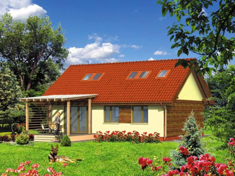 Budynek jednorodzinny parterowy z poddaszem nieużytkowym, niepodpiwniczonyŚciany zewnętrzne: gr. 44 cm z pustaków ceramicznych POROTHERM; strop: POROTHERM; dach: dwuspadowy o nachyleniu 35 stopni, krycie dachówką