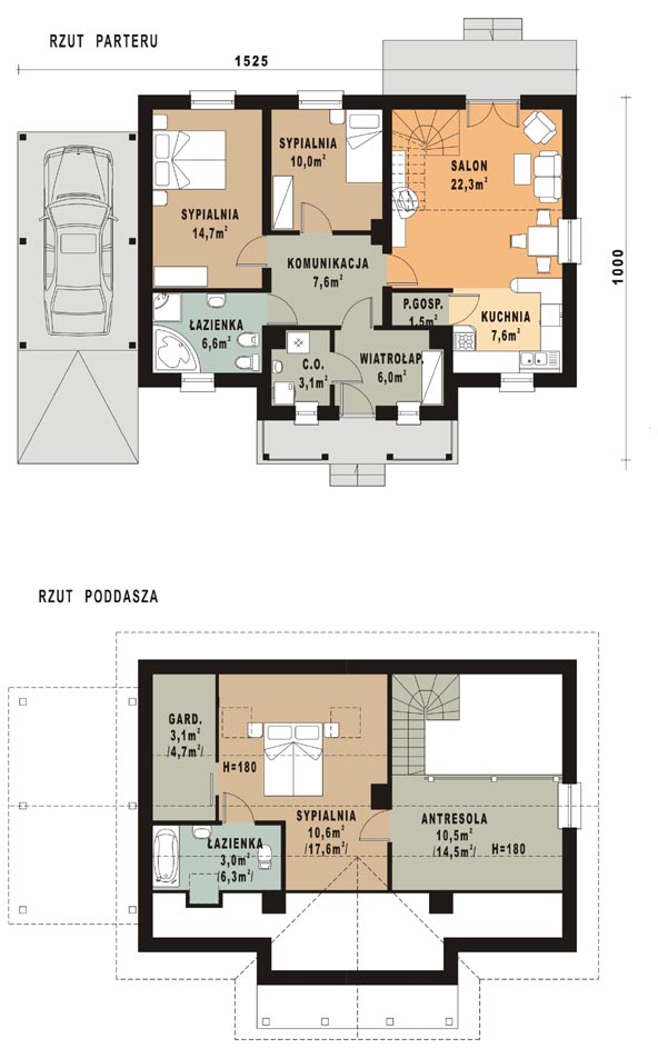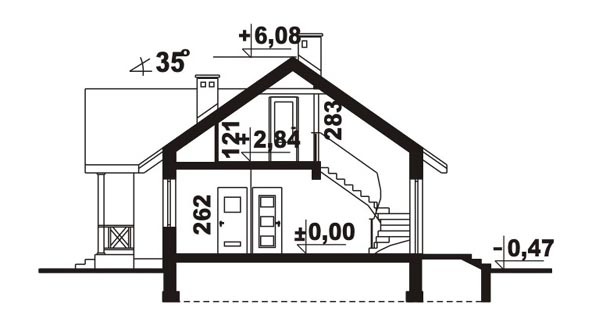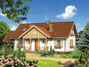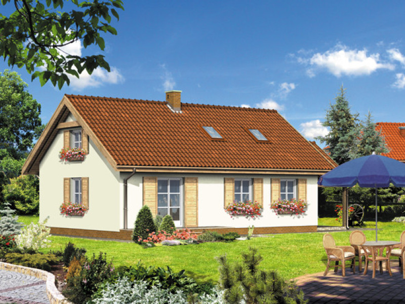Budynek jednorodzinny parterowy z poddaszem mieszkalnym, niepodpiwniczonyŚciany zewnętrzne: gr. 39 cm z pustaków ceramicznych + wełna ROCKWOOL; strop: żelbetowy; schody: drewniane; dach: dwuspadowy o nachyleniu 35 stopni, krycie dachówką