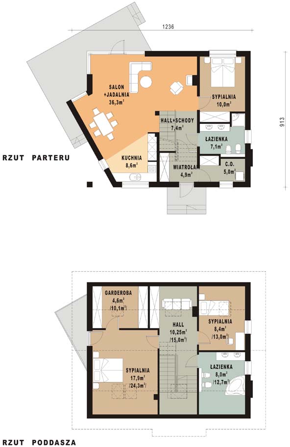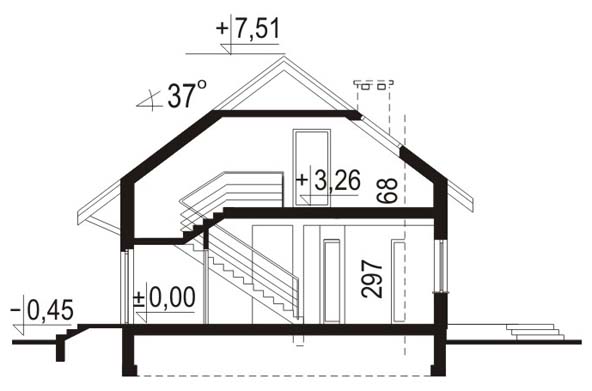 Budynek jednorodzinny parterowy z poddaszem mieszkalnym, niepodpiwniczonyŚciany zewnętrzne: gr. 36,5 cm z bloczków YTONG; strop: żelbetowy; dach: dwuspadowy o nachyleniu 37 stopni, krycie dachówką