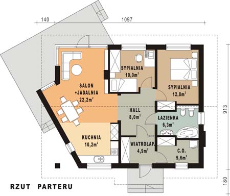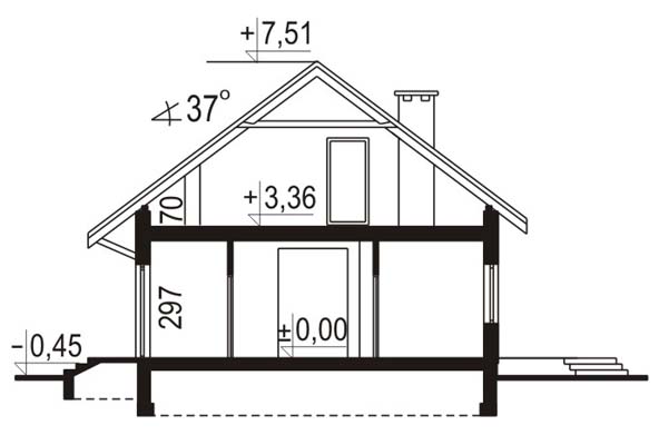 Budynek jednorodzinny parterowy z poddaszem nieużytkowym, niepodpiwniczonyŚciany zewnętrzne: gr. 36,5 cm z bloczków YTONG; strop: żelbetowy; dach: dwuspadowy o nachyleniu 37 stopni, krycie dachówką