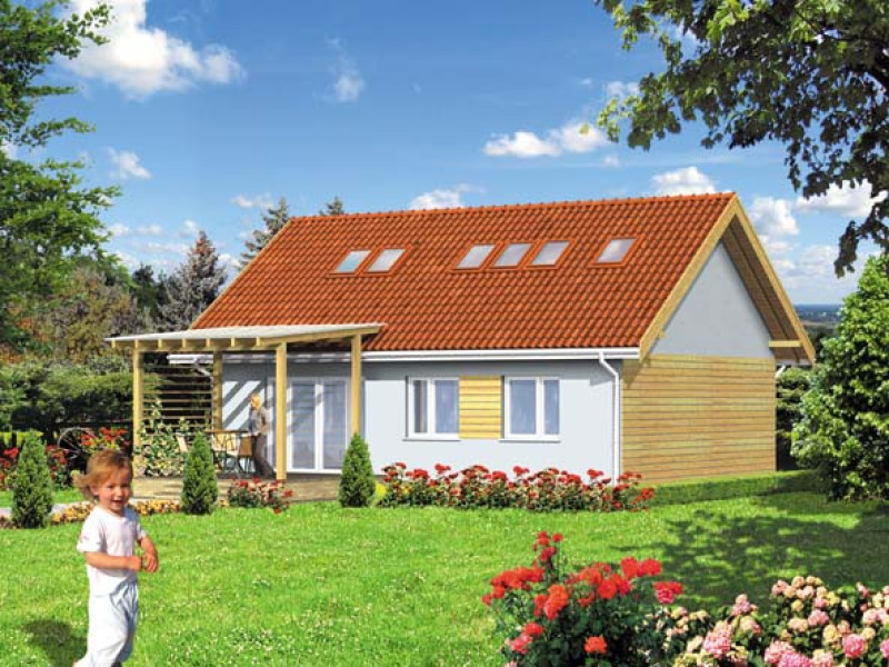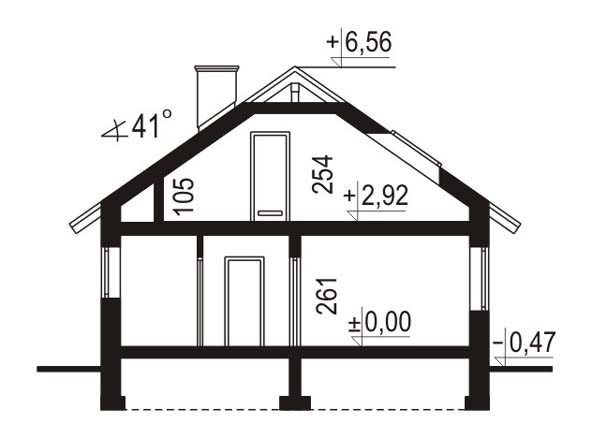 Budynek jednorodzinny parterowy z poddaszem mieszkalnym, niepodpiwniczonyŚciany zewnętrzne: gr. 44 cm z pustaków ceramicznych POROTHERM; strop: POROTHERM; schody: drewniane; dach: dwuspadowy o nachyleniu 35 stopni, krycie dachówką