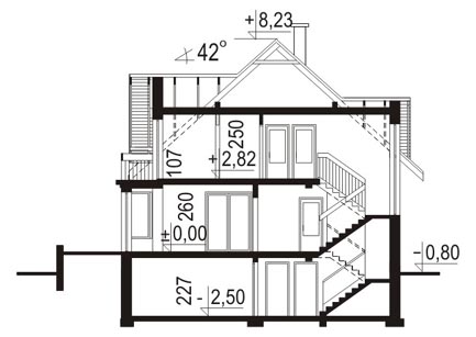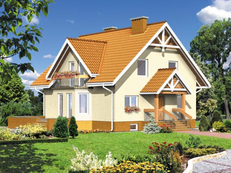 Budynek jednorodzinny parterowy z poddaszem mieszkalnym, podpiwniczonyŚciany zewnętrzne: gr. 39 cm z pustaków ceramicznych; strop: żelbetowy; schody: żelbetowe; dach: dwuspadowy o nachyleniu 42 stopni, krycie dachówką