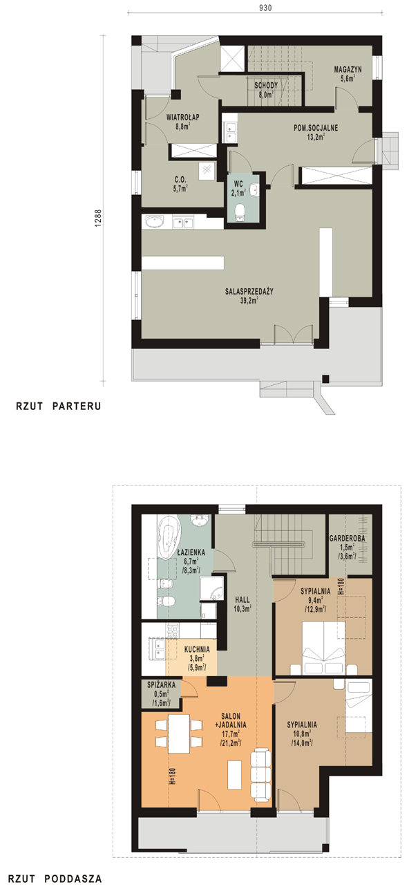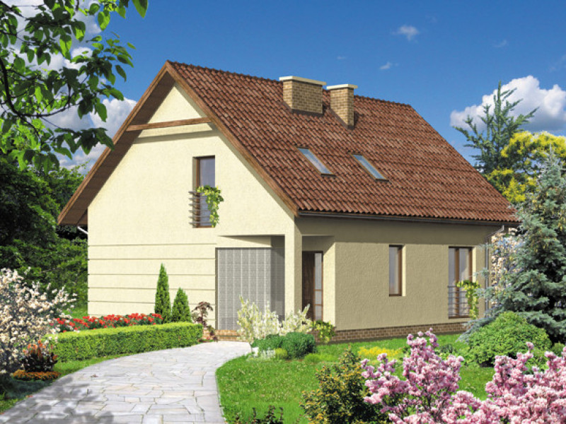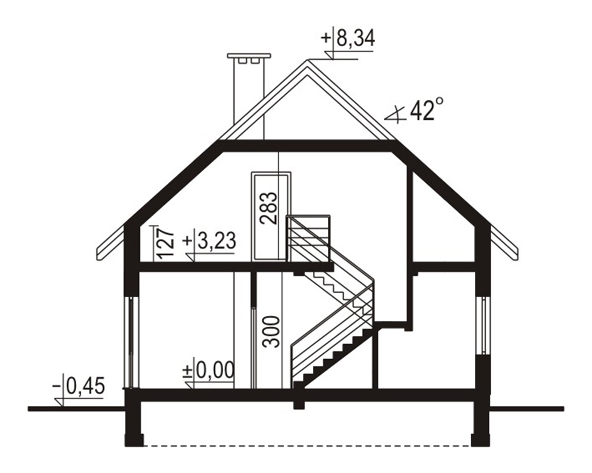 Budynek jednorodzinny parterowy z poddaszem mieszkalnym i sklepem, niepodpiwniczonyŚciany zewnętrzne: gr. 36,5 cm z bloczków YTONG; strop: żelbetowy; schody: żelbetowe; dach: dwuspadowy o nachyleniu 42 stopni, kryty dachówką