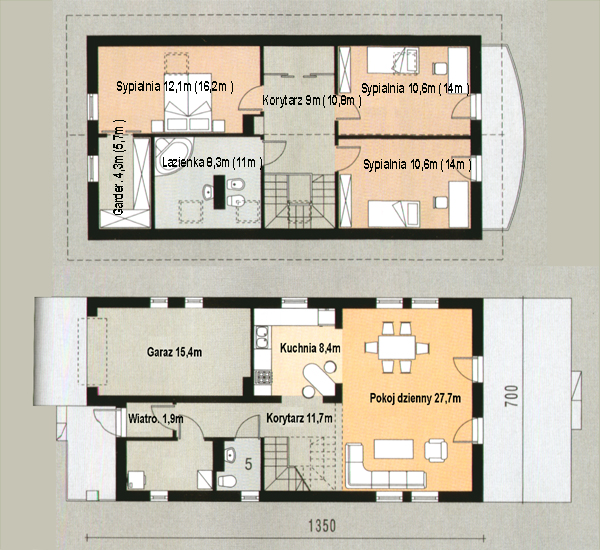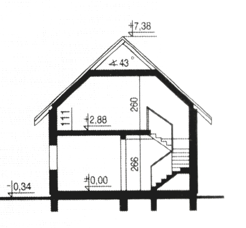 Budynek jednorodzinny parterowy z poddaszem mieszkalnym, niepodpiwniczonyŚciany zewnętrzne: gr. 36,5 cm z bloczków YTONG; strop: żelbetowy; schody: żelbetowe; dach: dwuspadowy o nachyleniu 43 stopni, kryty dachówką