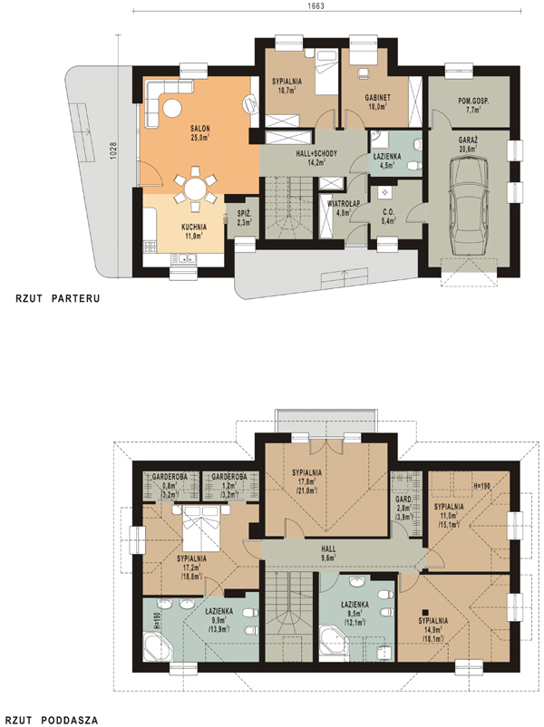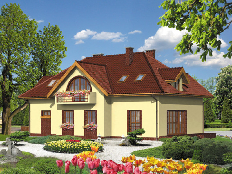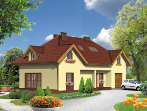 Budynek jednorodzinny parterowy z poddaszem mieszkalnym, niepodpiwniczonyŚciany zewnętrzne: gr. 44 cm z pustaków ceramicznych POROTHERM; strop: POROTHERM; schody: żelbetowe; dach: czterospadowy o nachyleniu 40 stopni, kryty dachówką ceramiczną KORAMIC