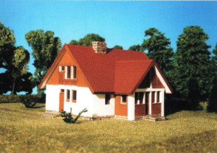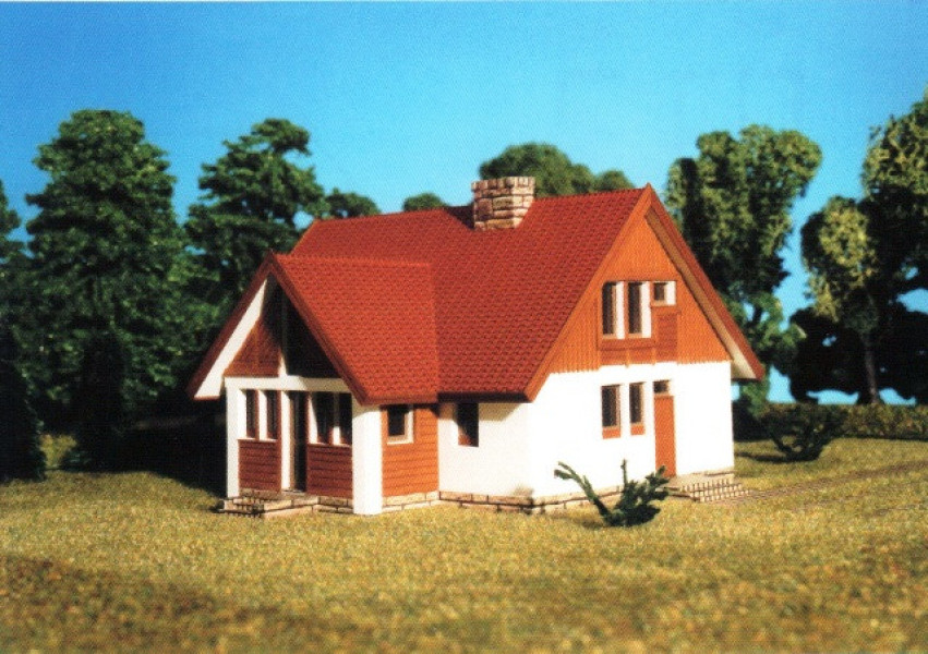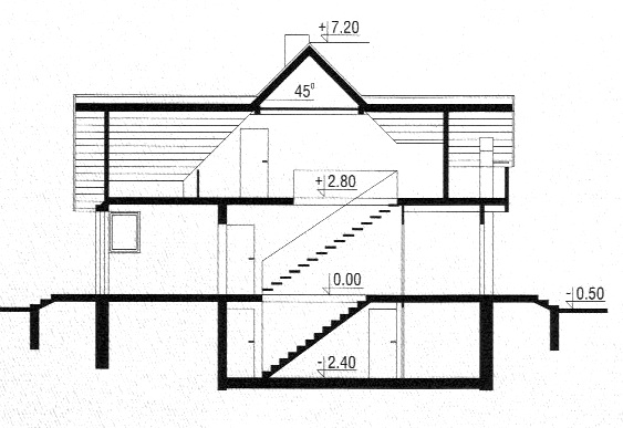Budynek jednorodzinny parterowy z poddaszem mieszkalnym, częściowo podpiwniczony. Ściany zewnętrzne: gr. 38cm; pustak ceramiczny + styropian; strop: płyta żelbetowa monolityczna alternatywnie Fert 40 lub DZ-3, nad poddaszem strop drewniany; schody: z piwnicy żelbetowe, na poddasze drewniane; dach: dach dwuspadowy o kącie nachylenia 45 stopni, kryty dachówką ceramiczną lub bitumiczną