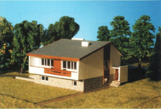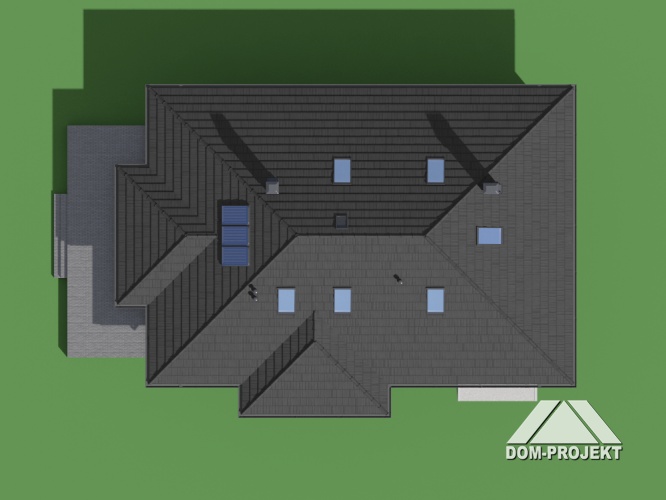 Budynek jednorodzinny. Część mieszkalna na parterze. W przyziemiu garaż i pomieszczenia techniczno-gospodarcze z oddzielnym wejściem. Projekt zawiera 3 wersje dachu: płaski, dwuspadowy i czterospadowy. Ściany zewnętrzne: gr. 38cm; pustak ceramiczny + styropian; strop: stropy DZ-3 alternatywnie Fert 45 lub płyta żelbetowa monolityczna; schody: żelbetowe; dach: płaski kryty papą, dwu lub czterospadowy o kącie nachylenia 22 stopnie kryty blachodachówką
