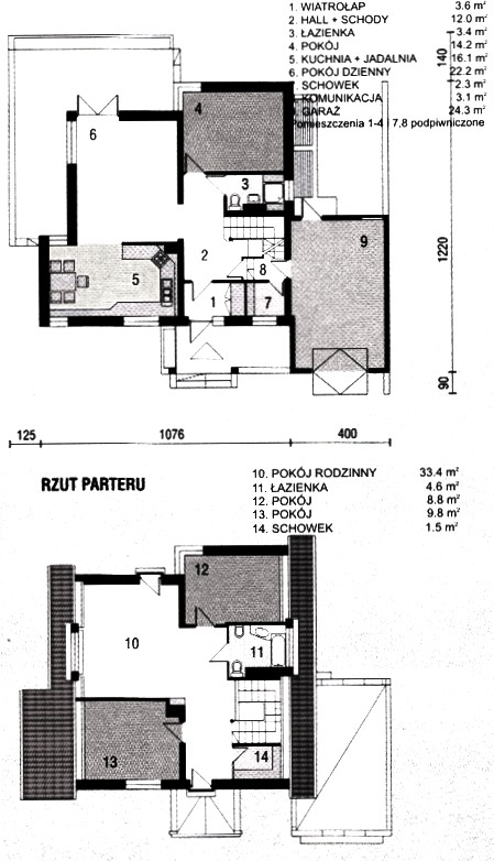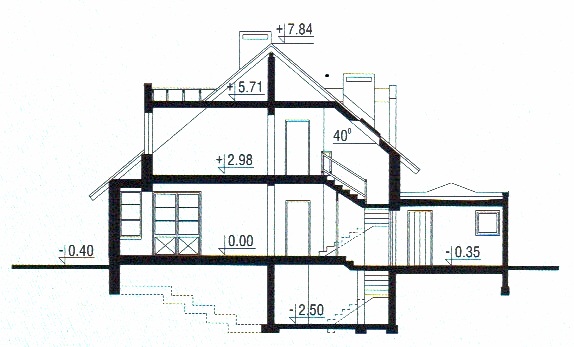 Budynek jednorodzinny parterowy, z poddaszem mieszkalnym, częściowo podpiwniczony. 5 pokoi z kuchnią. Ściany zewnętrzne: gr. 38 cm z pustaków ceramicznych + styropian; strop: Fert 40, nad poddaszem drewniany. Nad garażem stropodach na płycie żelbetowej monolitycznej; schody: żelbetowe; dach: dwuspadowy o kacie nachylenia 40 stopni, kryty dachówką bitumiczną lub blachą dachówkową