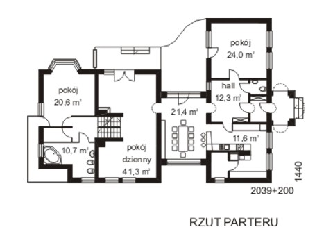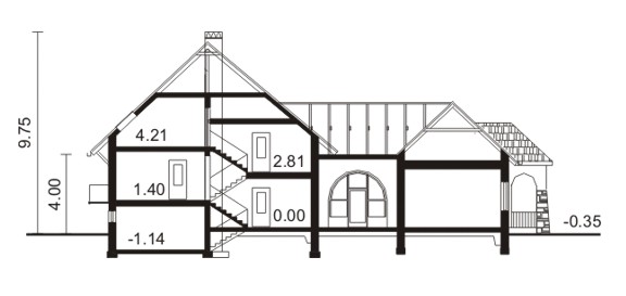 Budynek jednorodzinny z półpoziomami, parterowy z poddaszem mieszkalnym, częściowo podpiwniczony. 6 pokoi z kuchnią Ściany zewnętrzne: gr. 38 cm z pustaków ceramicznych + styropian; strop: Fert 40, nad poddaszem drewniany; schody: żelbetowe; dach: dwuspadowy o kacie nachylenia 43 stopnie, kryty dachówką ceramiczną lub blachą dachówkową