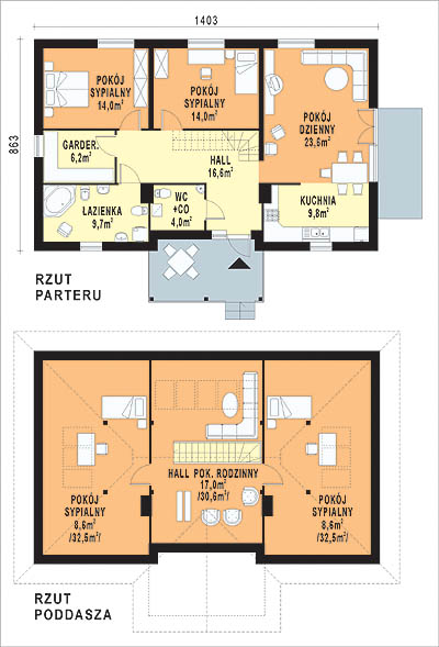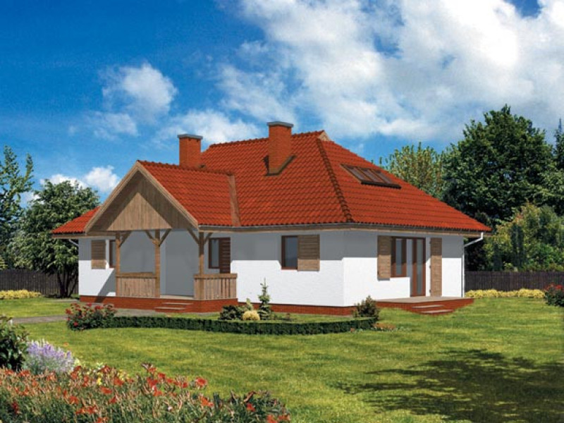 Budynek jednorodzinny parterowy z poddaszem mieszkalnym, niepodpiwniczony, bez garażuŚciany zewnętrzne: gr. 36,5cm bloczki YTONG; strop: gętsozebrowany FERT 45; schody: żelbetowe; dach: czterospadowy o kącie nachylenia 37 stopni, konstrukcja drewniana, kryty dachówka ceramiczna lub cementową
