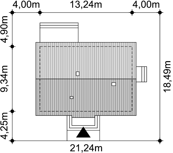 Mały dom mieszkalny przeznaczony dla 4-osobowej rodziny.Ściany: 2-warstwowe - pustak ceramiczny + styropian, Stropy: żelbetowe, wylewane, Dach: blacha na rąbek stojący Classic Ruukki, kąt nachylenia 45°