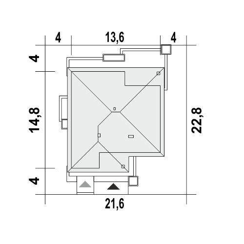 Jarzębina to niewielki piętrowy dom przeznaczony dla 4-osobowej rodziny. Projekt przyciąga uwagę prostą, nowoczesną bryłą. Podział na strefę dzienną i prywatną odpowiada podziałowi na parter i piętro. Otwarta przestrzeń parteru umożliwia swobodną aranżację wnętrz. Układ funkcjonalny został rozplanowany wokół głównego pionu w którym znajdują się pomieszczenia i urządzenia techniczne i sanitarne. Piętro, jako część prywatna, mieści trzy sypialnie z dostępem do balkonów oraz łazienkę. Zwarta bryła pozwala obniżyć koszty budowy i utrzymania domu.Ściany: 2-warstwowe - pustak ceramiczny + styropian, Stropy: żelbetowe, wylewane, Dach: papa - dach płaski (spadek ok 2-3%)
