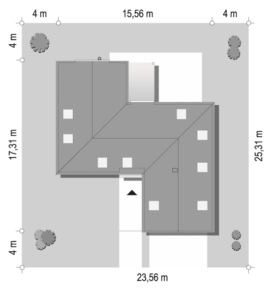 Jednorodzinny dom mieszkalny, parterowy z użytkowym poddaszem, niepodpiwniczony. Budynek zaprojektowano w technologii szkieletu drewnianego, wykończonego szalówką. Całość została ujęta w prostej, klasycznej bryle, przykrytej dwuspadowym dachem. Dom zawiera w sobie optymalny program dla 4-osobowej rodziny. Na parterze przewidziano dodatkowy pokój. Atutem projektu jest duży zadaszony taras.Ściany: szkielet drewniany, Stropy: belki drewniane + wełna mineralna, Dach: dachówka gontopodobna GERARD CORONA, kąt nachylenia 40°