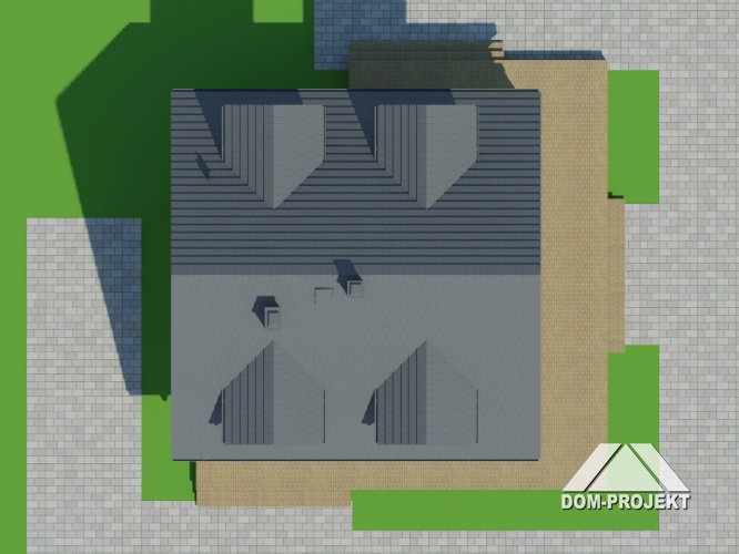 Mały dom parterowy z użytkowym poddaszem. Prosta bryła z dwuspadowym dachem. Ogrzewany na paliwo stałe – na parterze duża kotłownia i skład opału z osobnym wejściem. Na piętrze antresola nad pokojem dziennym.Ściany: 2-warstwowe - pustak ceramiczny + styropian, Stropy: żelbetowe, wylewane, Dach: blachodachówka, kąt nachylenia 40°